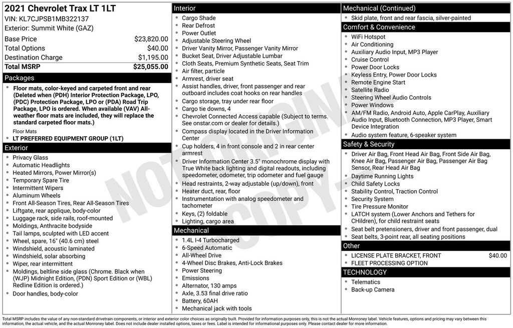 Experience the perfect blend of style, technology, and capability in the 2021 Chevrolet Trax LT. Visit our showroom today and let us demonstrate how this exceptional SUV can elevate your driving experience.